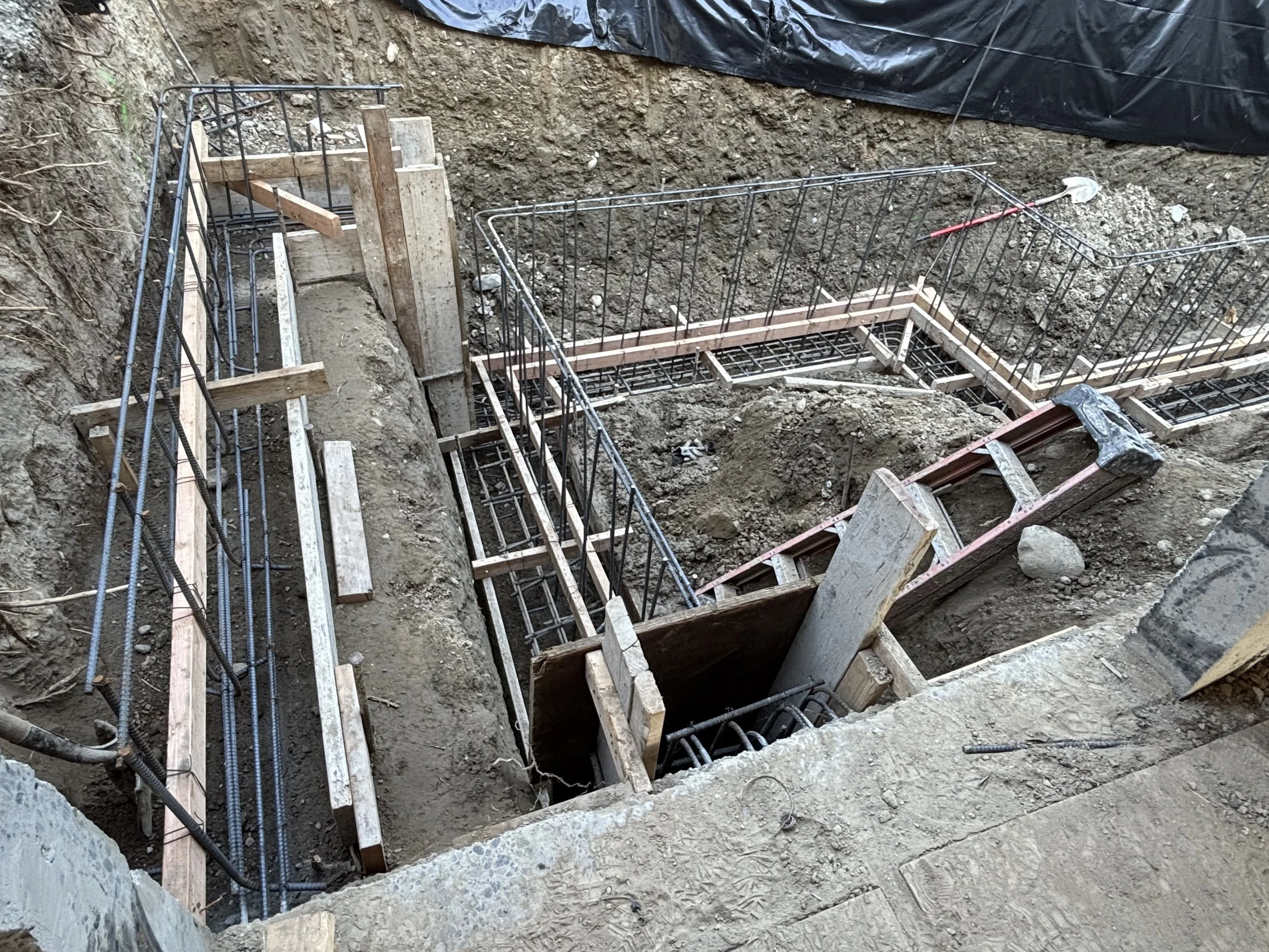 Excavation completed for full-height basement (approximately 200 yards of dirt removed)
